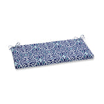 Modern flair and the elegance of this outdoor bench cushion set the scene for cheer in any outdoor setting. In bright shades of cobalt blue and turquoise, its damask pattern is accented with flowers, diamonds and fleur-de-lis. Additional features of this outdoor bench cushion include square corners, 14" ties and recycled polyester fill with a zippered closure for easy removal. Also suitable for indoor use.