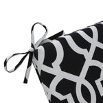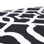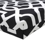 The black and white design of this outdoor oversized chaise lounge cushion grips your attention with elegance. On a black ground, its interlocking white geometric pattern contrasts beautifully on the fade resistant fabric for a modern look. Additional features of this outdoor oversized chaise lounge cushion include 14" ties to secure the cushion to your furniture, square corners and recycled polyester fill with a sewn seam closure.