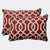 The highly attractive design of this set of two outdoor oversized lumbar pillows grips your attention with elegance. On a deep shade of red, the interlocking white geometric pattern contrasts beautifully. Their durable fabric is fade-resistant. Additional features of these outdoor oversized lumbar pillows include self welt cords for a clean finish and recycled polyester fiber fill with sewn seam closures. Also suitable for indoor use.