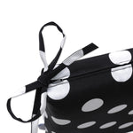 Riveting and timeless, the polka dot pattern of this set of two outdoor oversized seat cushions adds an exciting touch of elegance and playful energy to any outdoor area. In classic black and white polka dots, their fabric is fade resistant. Additional features of these outdoor oversized seat cushions include square corners, 14" ties and recycled polyester fill with zippered closures for easy removal. Also suitable for indoor use.