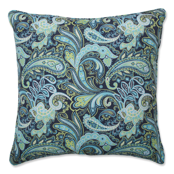 The gorgeous fashion and bright, coordinating hues of this floor pillow bring elegance to any outdoor area. In the hot, on-trend paisley pattern, shimmering shades of aqua blue, navy blue, green and off-white create a cool style. Additional features of this outdoor floor pillow include a self-welt cord for a clean finish and recycled polyester fiber fill with a sewn seam closure. Also suitable for indoor use.