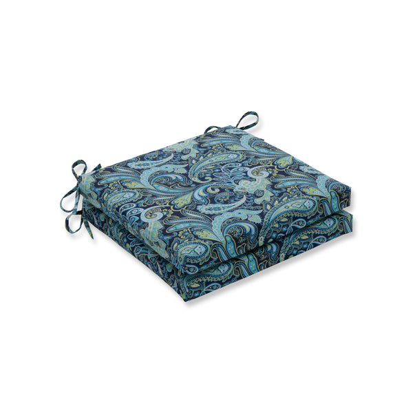 The gorgeous fashion and bright, coordinating hues of this set of two outdoor oversized seat cushions bring elegance to any outdoor area. In the hot, on-trend paisley pattern, shimmering shades of aqua blue, navy blue, green and off-white create a cool style. Additional features of these outdoor oversized seat cushions include square corners, 14" ties and recycled polyester fill with zippered closures for easy removal. Also suitable for indoor use.