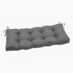 Revamp the style of your outdoor escape with the eye-catching, urban contemporary appeal of this outdoor bench cushion. Its enduring, linen textured polyester fabric is in a solid shade of on-trend gray, which embodies simplicity and versatility. Additional features of this outdoor bench cushion include tufted detailing, 14" ties and recycled polyester fiber fill with a sewn seam closure. Also suitable for indoor use.