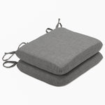 Revamp the style of your outdoor escape with the eye-catching, urban contemporary appeal of this set of two outdoor seat cushions. Their enduring, linen textured polyester fabric is in a solid shade of on-trend gray, which embodies simplicity and versatility. Additional features of these outdoor seat cushions include rounded corners, 14" ties and recycled polyester fill with sewn seam closures. Also suitable for indoor use.