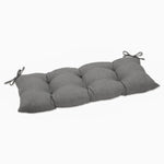 Revamp the style of your outdoor escape with the eye-catching, urban contemporary appeal of this outdoor bench cushion. Its enduring, linen textured polyester fabric is in a solid shade of on-trend gray, which embodies simplicity and versatility. Additional features of this outdoor bench cushion include tufted detailing, 14" ties and recycled polyester fiber fill with a sewn seam closure. Also suitable for indoor use.