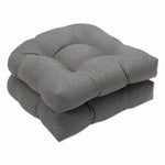 Revamp the style of your outdoor escape with the eye-catching, urban contemporary appeal of this set of two outdoor tufted wicker chair cushions. Their enduring, linen textured polyester fabric is in a solid shade of on-trend gray, which embodies simplicity and versatility. Additional features of these outdoor tufted wicker chair cushions include recycled polyester fiber fill and sewn seam closures. Also suitable for indoor use.