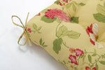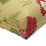 Dotted with butterflies and lovely flowers, this large outdoor bench cushion delivers a look of tranquility. In shades of red, off-white and green, its botanical pattern is set on a background in a soft shade of yellow. Polyester fabric is weather- and fade-resistant. Additional features of this large outdoor bench cushion include tufted detailing, 14" ties and recycled polyester fiber fill with a sewn seam closure. Also suitable for indoor use.