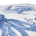 Bring beauty of the sea to your patio or deck with the stylish pattern of this set of two outdoor seat cushions. Seashells, crustaceans, fish, seahorses and even an octopus appear in contrasting deep navy and khaki on an off-white ground with a linen-like textured look. Polyester fabric is weather- and UV-resistant. Additional features of these outdoor seat cushions include rounded corners, 14" ties and recycled polyester fill with sewn seam closures. Also suitable for indoor use.