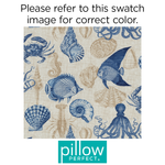 Bring beauty of the sea to your patio or deck with the stylish pattern of this set of two outdoor oversized seat cushions. Seashells, crustaceans, fish, seahorses and even an octopus appear in contrasting deep navy and khaki on an off-white ground with a linen-like textured look. Polyester fabric is weather- and UV-resistant. Additional features of these outdoor oversized seat cushions include square corners, 14" ties and recycled polyester fill with zippered closures for easy removal. Also suitable for indoor use.