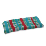 Bringing a classic resort look to your outdoor area, this awning stripe is the perfect combination of a traditional stripe in modern colors. The incredibly rich colors of bright coral and turquoise tones are mixed with a hint of green creating an eye-catching appeal. Add this outdoor stripe to create a refreshing backdrop for enjoying the outdoors. Additional features of this outdoor tufted loveseat cushion include recycled polyester fiber fill and a sewn seam closure. Also suitable for indoor use.