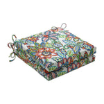 Bringing distinctive color-rich design to patios and porches, this set of two outdoor oversized seat cushions adds bold style with its vibrant floral print. This impeccable design boasts large blooms in vivid shades of red, blue, green, orange and yellow that pop off the off-white ground. Additional features of these outdoor oversized seat cushions include square corners, 14" ties and recycled polyester fill with zippered closures for easy removal. Also suitable for indoor use.