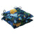 This set of two outdoor tufted chair cushions features a large-scale floral printed in bright shades of blue, yellow and green. It will make a striking statement in any outdoor space. Additional features of these outdoor tufted chair cushions include 14" ties and recycled polyester fiber with sewn seam closures. Also suitable for indoor use.