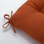 Spice up the look of your patio or porch with this outdoor bench cushion in the rich color of cinnamon. Its highly textured fabric is durable, fade resistant and in a light shade of brown, which coordinates with other decor. Additional features of this outdoor bench cushion include tufted detailing, 14" ties and recycled polyester fiber fill with a sewn seam closure. Also suitable for indoor use.