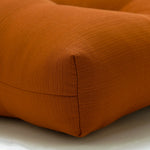 Spice up the look of your patio or porch with this outdoor bench cushion in the rich color of cinnamon. Its highly textured fabric is durable, fade resistant and in a light shade of brown, which coordinates with other decor. Additional features of this outdoor bench cushion include tufted detailing, 14" ties and recycled polyester fiber fill with a sewn seam closure. Also suitable for indoor use.