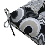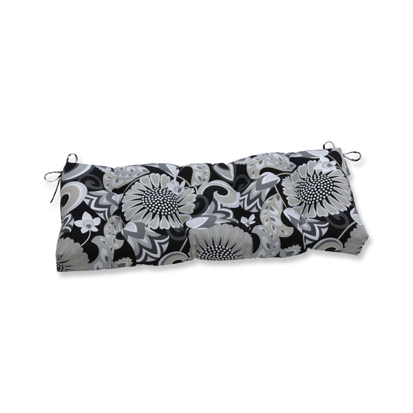 Create a welcoming new style for your patio or porch with this bold and beautiful outdoor bench cushion. Its elegant floral pattern is modern in soothing shades of gray and taupe set against a black ground. Additional features of this outdoor bench cushion include tufted detailing, 14" ties and recycled polyester fiber fill with a sewn seam closure. Also suitable for indoor use.