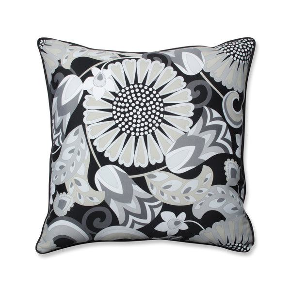 Create a welcoming new style for your patio or porch with this bold and beautiful outdoor floor pillow. Its elegant floral pattern is modern in soothing shades of gray and taupe set against a black ground. Additional features of this outdoor floor pillow include a black coordinating cord for a beautiful finish and recycled polyester fiber fill with a sewn seam closure. Also suitable for indoor use.