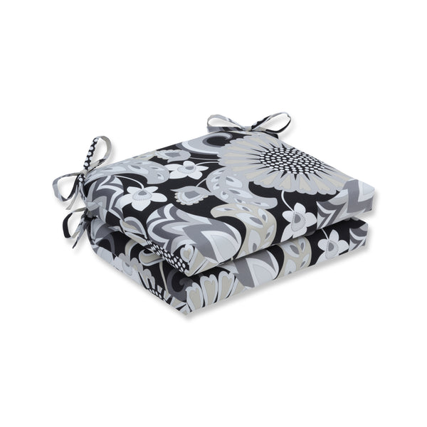 Create a welcoming new style for your patio or porch with this set of two bold and beautiful outdoor seat cushions. Their elegant floral pattern is modern in soothing shades of gray and taupe set against a black ground. Additional features of these outdoor seat cushions include square corners, 14" ties and recycled polyester fill with zippered closures for easy removal. Also suitable for indoor use.