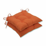 Create a sunny look for your outdoor oasis with this set of two outdoor tufted chair cushions. Their clean style in a bright, tropical shade of solid orange is bold and easily coordinates with other decor. Polyester fabric is durable and fade resistant. Additional features of these outdoor tufted chair cushions include 14" ties and recycled polyester fiber fill with sewn seam closures. Also suitable for indoor use.