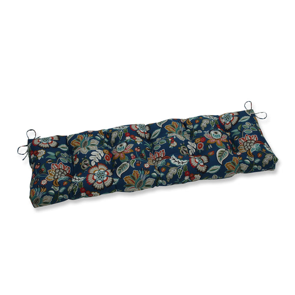 Embellish your porch or patio with the vibrant botanical pattern of this large outdoor bench cushion. Flowers and leaves adorn this design in multiple colors on a lovely blue ground. Fabric is durable and fade resistant. Additional features of this large outdoor bench cushion include tufted detailing, 14" ties and recycled polyester fiber fill with a sewn seam closure. Also suitable for indoor use.