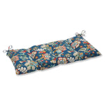 Embellish your porch or patio with the vibrant botanical pattern of this outdoor swing/bench cushion. Flowers and leaves adorn this design in multiple colors on a lovely blue ground. Fabric is durable and fade resistant. Additional features of this outdoor swing/bench cushion include tufted detailing, 14" ties and recycled polyester fiber fill with a sewn seam closure. Also suitable for indoor use.