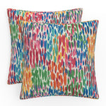 Colors rain down in modern splendor with this set of two irresistible outdoor decorative pillows. Inspired by raindrops, their painterly pattern is in brilliant shades of pink, aqua, yellow, green, blue and red set on a white ground. Additional features of these outdoor decorative pillows include coordinating welt cords for a clean finish and recycled polyester fiber fill with sewn seam closures. Also suitable for indoor use.