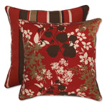 Modern stripes and elegant florals of this set of two outdoor decorative pillows make the reversible patterns memorable accents for any home or patio decor. Chic brown, tan and red add a contemporary twist to these patterns and bring a warm look. Additional features of these outdoor decorative pillows include coordinating welt cords for a clean finish and recycled polyester fiber fill with sewn seam closures. Also suitable for indoor use.