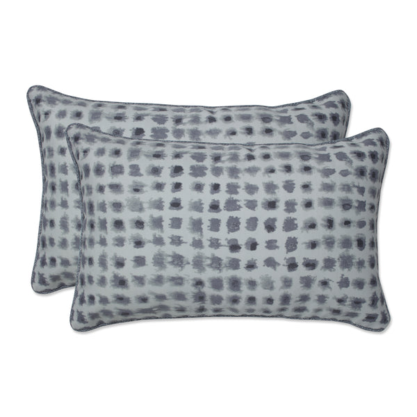 The modern pattern of this set of two outdoor lumbar pillows resembles a watercolor dot. This essential print has layered shades of gray atop an off-white ground creating printed dimension and texture. They're a must-have addition that plays well with all patterns and prints. Additional features of these outdoor lumbar pillows include coordinating welt cords for a clean finish and recycled polyester fiber fill with sewn seam closures. Also suitable for indoor use.