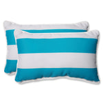 Fresh and bright aqua wonderfully contrasts with white on this plush outdoor set of two rectangular throw pillows. Placed next to a pool or in a cabana, you'll love the bold color and how it instantly exudes a summer vibe. Additional features of these outdoor lumbar pillows include coordinating welt cords for a beautiful finish and recycled polyester fiber fill with sewn seam closures. Also suitable for indoor use.