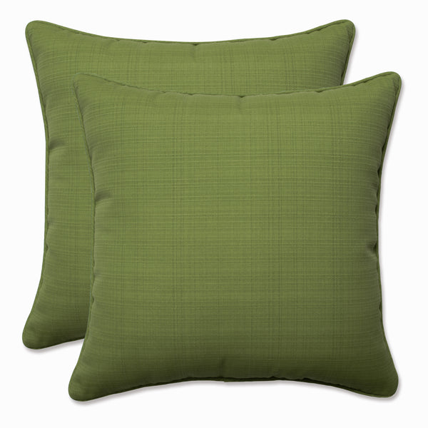 Introduce a gorgeous green on your porch with this set of two versatile outdoor throw pillows. Their solid green pattern easily coordinates with other decor and accents any outdoor area with a fresh, natural look. The durable polyester fabric has a linen-like texture and is fade resistant. Additional features of these outdoor throw pillows include self welt cords for a clean finish and recycled polyester fiber fill with sewn seam closures. Also suitable for indoor use.