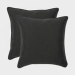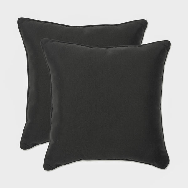 Chic and elegant, this set of two outdoor throw pillows makes a perfect decorating accessory for simplicity and comfort. They're in solid black and easily coordinate with any decor. The richly textured polyester fabric is durable and fade-resistant, ideal for a deck or patio. Additional features of these outdoor throw pillows include self welt cords for a clean finish and recycled polyester fiber fill with sewn seam closures. Also suitable for indoor use.