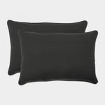 Chic and elegant, this set of two outdoor oversized lumbar pillows makes a perfect decorating accessory for simplicity and comfort. They're in solid black and easily coordinate with any decor. The richly textured polyester fabric is durable and fade-resistant, ideal for a deck or patio. Additional features of these outdoor oversized lumbar pillows include self welt cords for a clean finish and recycled polyester fiber fill with sewn seam closures. Also suitable for indoor use.