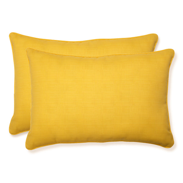 Add a touch of cheery ambiance to any outdoor space with this set of two vibrant yellow outdoor oversized lumbar pillows. Charming and functional, their polyester fabric is durable and fade resistant. Additional features of these outdoor oversized lumbar pillows include self welt cords for a clean finish and recycled polyester fiber fill with sewn seam closures. Also suitable for indoor use.