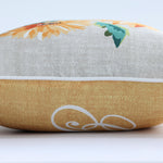 Usher in crisp fall weather with the Pillow Perfect Harvest Outdoor/Indoor Reversible Throw Pillow in Grateful Sunflowers. This reversible throw pillow features a bold bouquet of sunflowers against a natural ground on the front and "Grateful" messaging on the reverse side. Thanks to its UV-rating, the pillow can be displayed on your deck, patio, or front bench - and you can be found there sipping hot cocoa. The pillow's plush recycled polyester fill will hold its shape so you can enjoy it year after year. Spot clean as needed using mild detergent and let air dry.