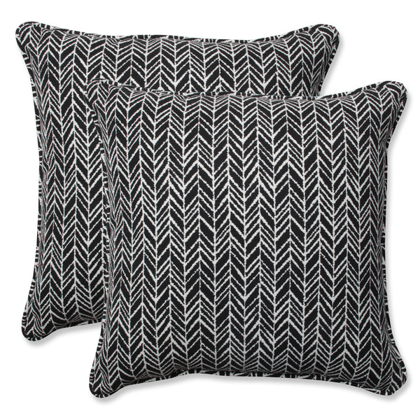 The on-trend appeal of this set of two outdoor decorative pillows is ideal for creating a casual outdoor escape. Their eye-catching herringbone pattern is in an off-white set against a black ground, which is perfect for complementing other decor. Additional features of these outdoor decorative pillows include self welt cords for a beautiful finish and recycled polyester fiber fill with sewn seam closures. Also suitable for indoor use.