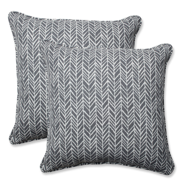 The on-trend appeal of this set of two outdoor decorative pillows is ideal for creating a casual outdoor escape and complementing other decor. Their eye-catching herringbone pattern is in an off-white set against a neutral gray ground. Additional features of these outdoor decorative pillows include self welt cords for a beautiful finish and recycled polyester fiber fill with sewn seam closures. Also suitable for indoor use.