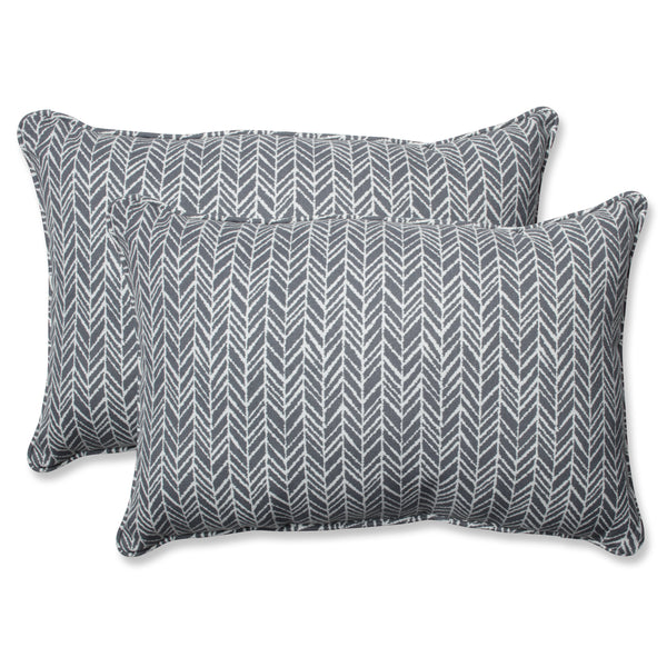 The on-trend appeal of these outdoor oversized lumbar pillows is ideal for creating a casual outdoor escape and complementing other decor. Their eye-catching herringbone pattern is in an off-white set against a neutral gray ground. Additional features of these outdoor oversized lumbar pillows include self welt cords for a beautiful finish and recycled polyester fiber fill with sewn seam closures. Also suitable for indoor use.