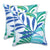 Large abstract tropical foliage in bright shades of blue, green and turquoise pops from an off-white ground with this set of two outdoor throw pillows. The pattern is printed on outdoor fade-resistant polyester fabric that has a slub texture for added dimension. Additional features of these outdoor throw pillows include coordinating welt cords in off-white natural for a clean finish and recycled polyester fiber fill with sewn seam closures. Also suitable for indoor use.