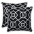 Make a fashion statement on your patio with this set of two elegant black and white outdoor decorative pillows. Their gripping white lattice like design has a delicate look and is set on a black ground for a modern effect. Additional features of these outdoor decorative pillows include white coordinating welt cords for a clean finish and recycled polyester fiber fill with sewn seam closures. Also suitable for indoor use.
