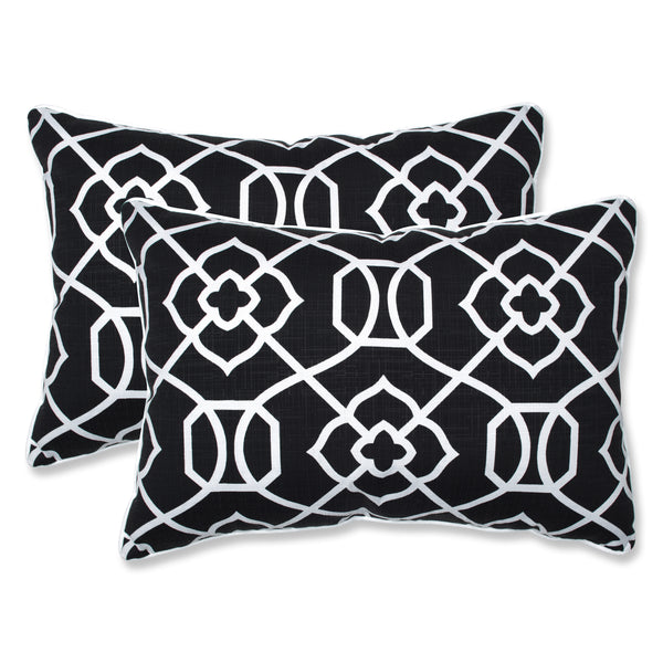 Make a fashion statement on your patio with this set of two elegant black and white outdoor oversized lumbar pillows. Their gripping white lattice like design has a delicate look and is set on a black ground for a modern effect. Additional features of these outdoor oversized lumbar pillows include white coordinating welt cords for a clean finish and recycled polyester fiber fill with sewn seam closures. Also suitable for indoor use.