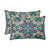 Brighten outdoor living space with this set of two outdoor oversized lumbar pillows. Their stylized geometric figures in contemporary shapes create a non-directional pattern. Shades of indigo, turquoise, terra-cotta and green make up their eye-catching pattern. Additional features of these outdoor oversized lumbar pillows include coordinating white welt cords for a clean finish and recycled polyester fiber fill with sewn seam closures. Also suitable for indoor use.