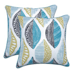 This wood block inspired pattern is designed to modernize any outdoor space with this set of two outdoor decorative pillows. Large-scale, abstract leaves colored in shades of teal, spa blue and espresso brown are printed on outdoor fade-resistant polyester fabric that has a slub texture for added dimension. Additional features of these outdoor decorative pillows include coordinating teal welt cords for a clean finish and recycled polyester fiber fill with sewn seam closures. Also suitable for indoor use.