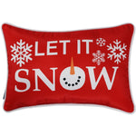 No matter how frightful the weather outside, keep your holiday decorations delightful with the Pillow Perfect Christmas Outdoor Reversible Lumbar Throw Pillow in Let It Snow. Featuring a "Let It Snow" message on the front side - with a festive snowman as the "O" - and snowflakes of various sizes on the reverse side. Thanks to its UV rating, the pillow can be displayed on your porch, patio, or deck. The plush recycled polyester fill will hold its shape so you can enjoy it year after year. Spot clean as needed using mild detergent and let air dry.