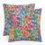 Colors rain down in modern splendor with this set of two irresistible outdoor throw pillows. Inspired by raindrops, their painterly pattern is in brilliant shades of pink, aqua, yellow, green, blue and red set on a white ground. Additional features of these outdoor throw pillows include coordinating welt cords for a clean finish and recycled polyester fiber fill with sewn seam closures. Also suitable for indoor use.