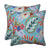 Lively and colorful, the updated floral pattern of this set of two outdoor decorative pillows is perfect for brightening up any backyard oasis. Abstract flowers and leaves in shades of orange, yellow, blue and green contrast nicely against the aqua ground. Additional features of these outdoor decorative pillows include white contrasting welt cords for a clean finish and recycled polyester fiber fill with sewn seam closures. Also suitable for indoor use.