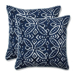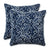 This globally inspired design offers a perfect welcome printed on this set of two outdoor throw pillows. Inspired from block printed designs, the repetitive pattern has petal-like shapes in off-white set against a traditional indigo blue ground, a perfect accent for a cosmopolitan outdoor living space. Made of 100% polyester. Additional features of these outdoor throw pillows include white coordinating welt cords for a clean finish and recycled polyester fiber fill with sewn seam closures. Also suitable for indoor use.