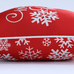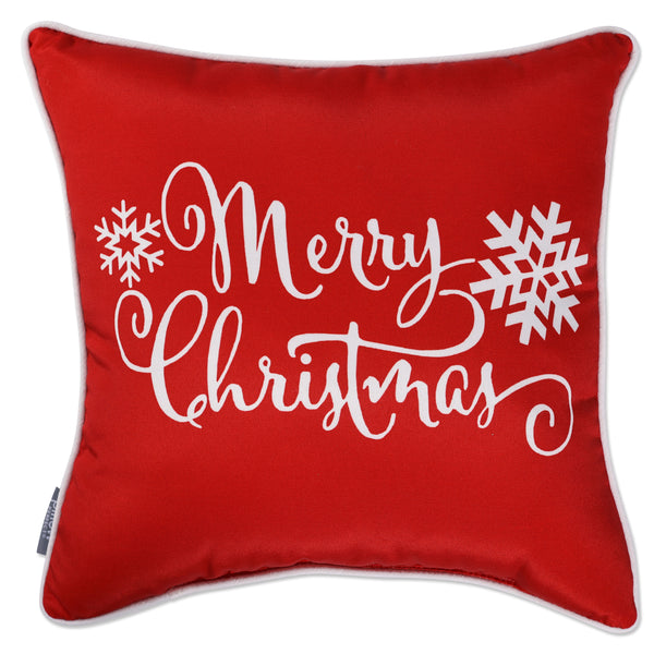 The Pillow Perfect Christmas Outdoor/Indoor Reversible Throw Pillow in Merry Christmas, Red is simple yet festive. Printed on a red ground, this reversible pillow features "Merry Christmas" on one side and falling snowflakes on the reverse side. Perfect for decorating your porch, deck, or patio because of its UV rating. The pillow's plush recycled polyester fill will hold its shape so you can enjoy it year after year. Spot clean as needed using mild detergent and let air dry.