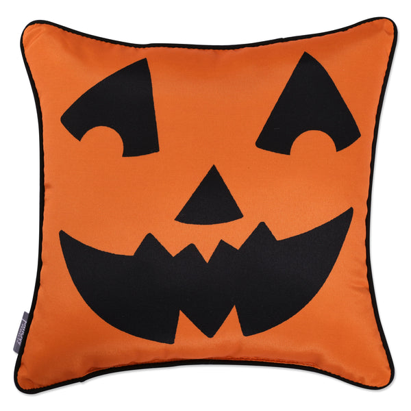 This UV-rated throw pillow is perfect for displaying on your front porch to charm trick-or-treaters, or on your deck for some Halloween flair. The Pillow Perfect Halloween Outdoor/Indoor Reversible Throw Pillow in Pumpkin Faces features a jack-o-lantern face on each side- a fun way to decorate for the season. The pillow's plush recycled polyester fill will hold its shape so you can enjoy it year after year. Spot clean as needed using mild detergent and let air dry.