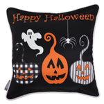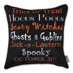 Celebrate the spookiest season with the Pillow Perfect Halloween Outdoor/Indoor Reversible Throw Pillow in Pumpkin Spell. Featuring "Happy Halloween" messaging, this decorative throw brings more fun, less fright. Enjoy the front side, or flip it over for fun Halloween phrases. Perfect for delighting trick-or-treaters on a porch bench or swing, this UV-rated pillow has plush recycled polyester fill that will hold its shape year after year. Spot clean as needed using mild detergent and let air dry.