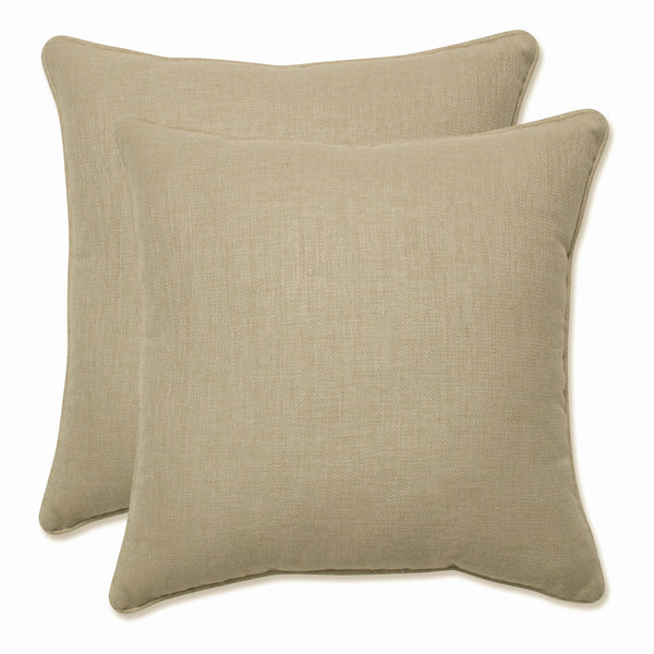 Bring neutral charm and a clean look to your porch or patio with this set of two outdoor throw pillows. In sandy shades of taupe, their linen textured fabric coordinates easily with virtually any color of decor. Additional features of these outdoor throw pillows include self welt cords for a clean finish and recycled polyester fiber fill with sewn seam closures. Also suitable for indoor use.