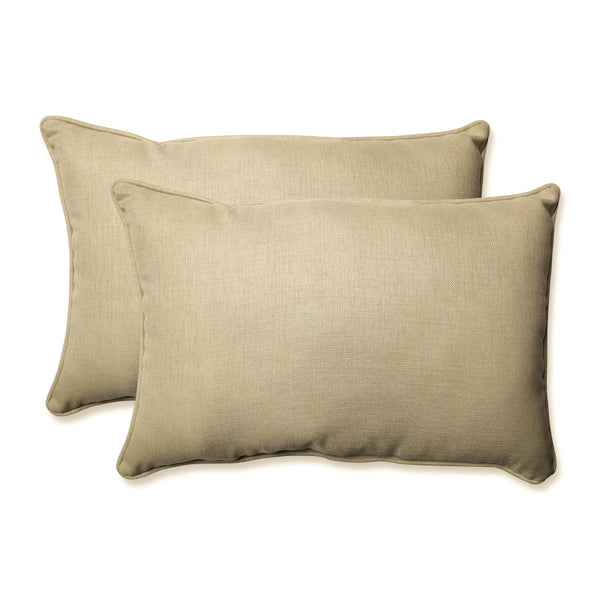 Bring neutral charm and a clean look to your porch or patio with this set of two outdoor oversized lumbar pillows. In sandy shades of taupe, their linen textured fabric coordinates easily with virtually any color of decor. Additional features of these outdoor oversized lumbar pillows include self welt cords for a clean finish and recycled polyester fiber fill with sewn seam closures. Also suitable for indoor use.